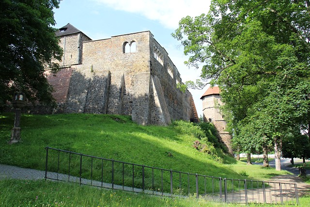 Popis: Severovýchodní nároží falce s palácem a kaplí.