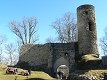 Popis: Drobná, dovnitř otevřená čtverhranná věž druhé brány (pohled z předhradí).