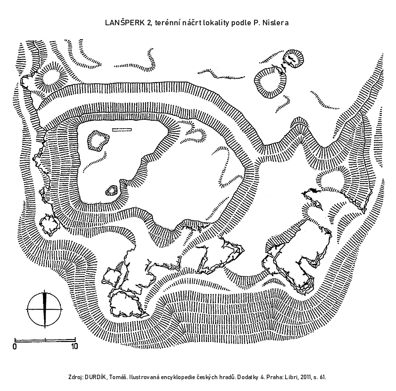 Asi 650 m od hradu Lanšperku se na výběžku planiny nad Tichou Orlicí nachází zaniklá fortifikace. Psaná historie o lokalitě mlčí, neznáme ani její jméno. Archeologické nálezy získané D. Víchem dokládají