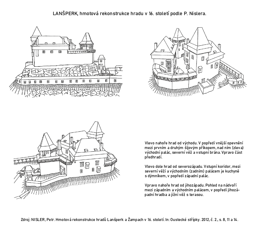 - NISLER, Petr. Hmotová rekonstrukce hradů Lanšperk a Žampach v 16. století. In: Oustecké střípky. 2012, č. 2, s. 1-14.
