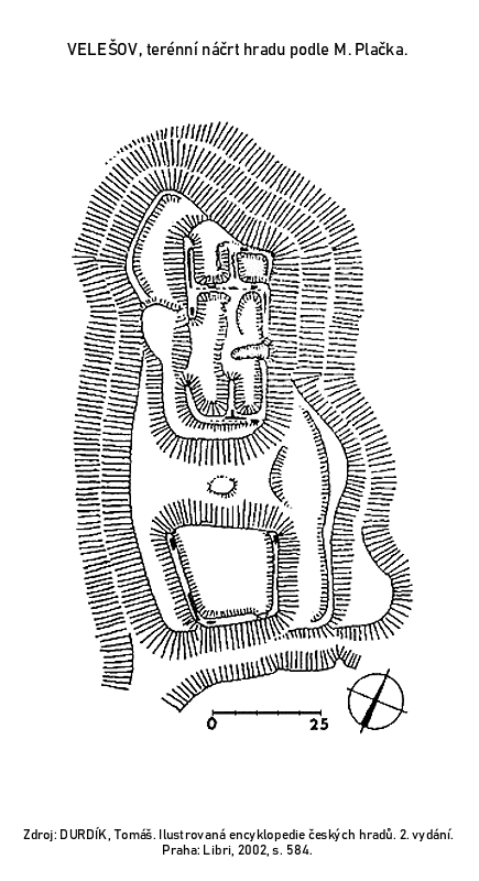 Velešov, který existoval pouze velmi krátkou dobu, nejspíše náležel dvoupalácovému typu, který byl v době Karlovské v Čechách vysloveně módní.