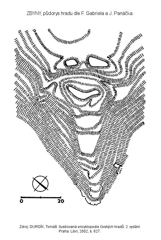 stupňovitě klesající vnitřní plochy hradu je zřejmě důsledkem jejího zemědělského využití, při němž zanikly veškeré reliéfní relikty středověké situace.